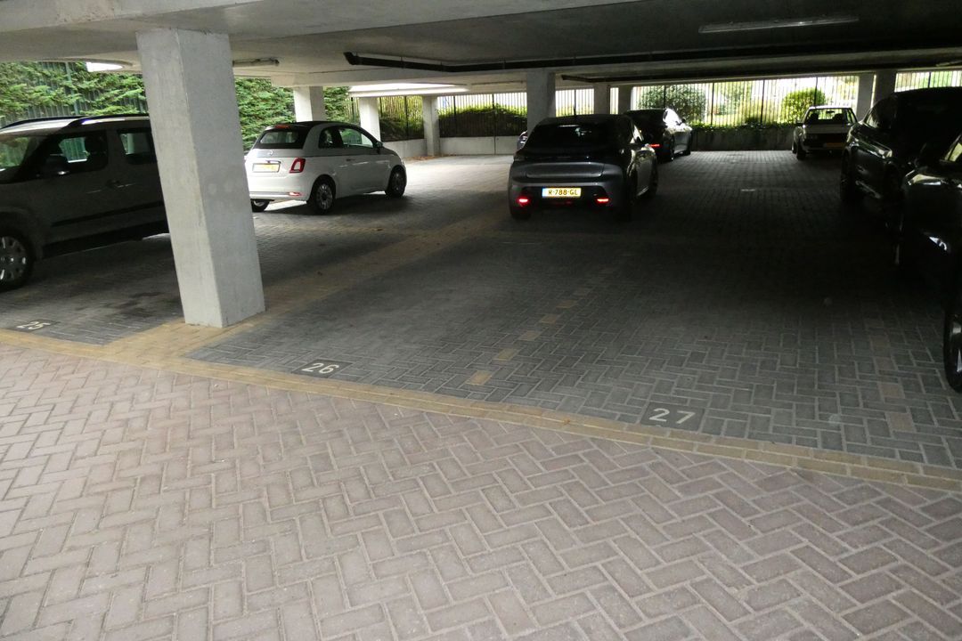Covered parking space (no. 27) located beneath the apartment complex "Onder het Lommer" on the corner of Thorbeckelaan and Albardastraat. Afm. 485x220. Drive-through height 2.15m.