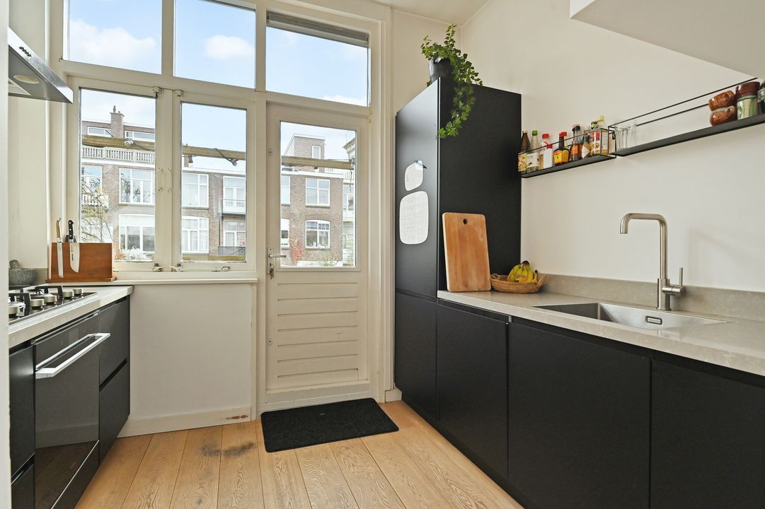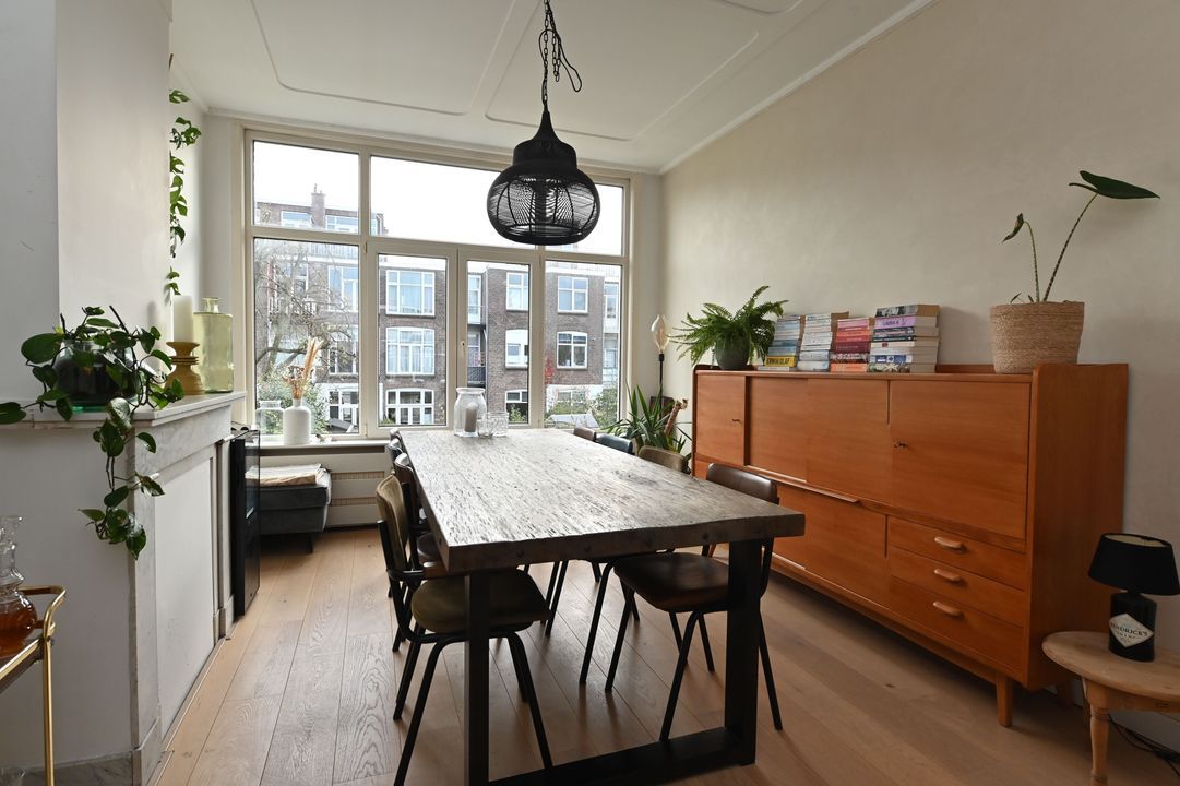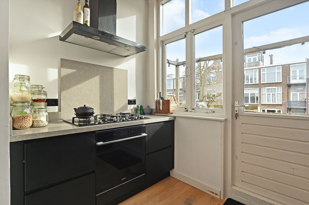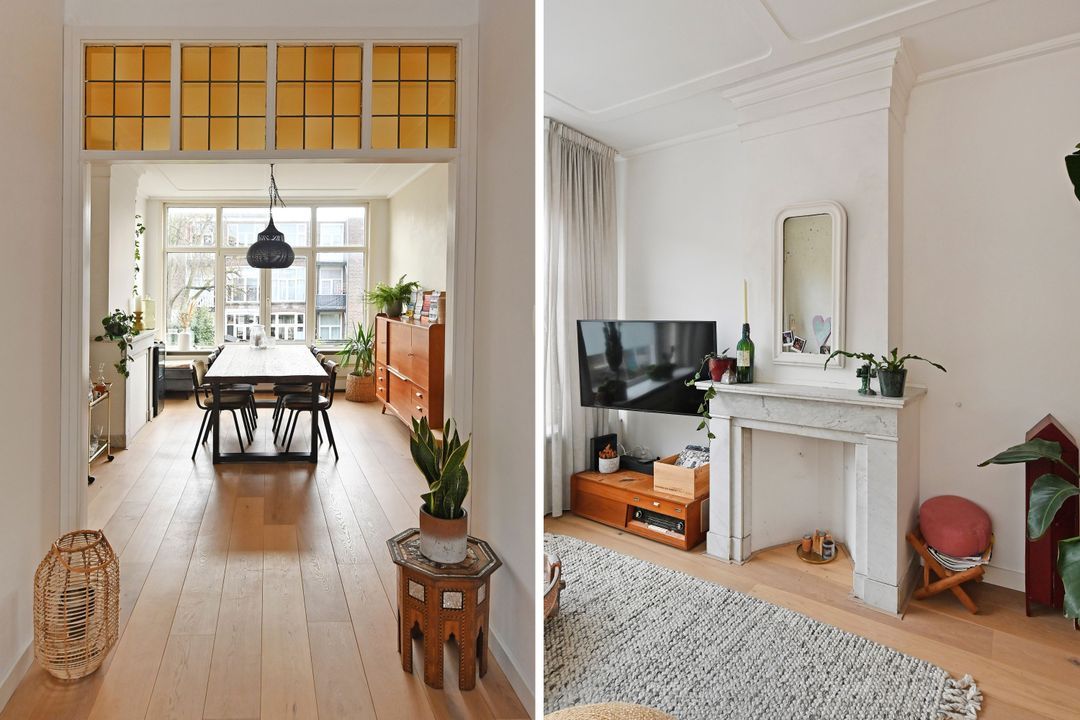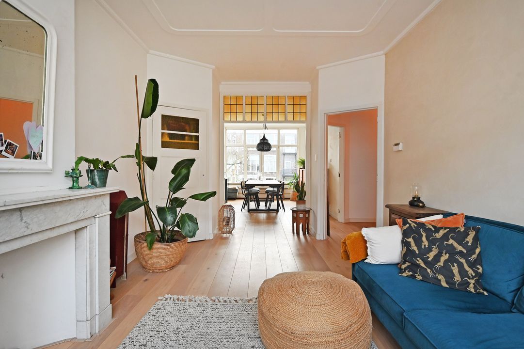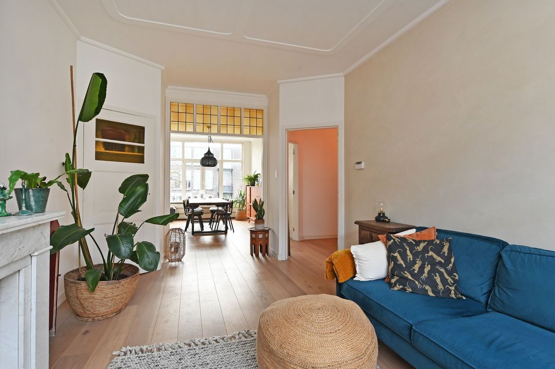 Between the Valkenboskade and the Fahrenheitstraat in the Bomenbuurt, well-maintained spacious (85m²) four-room apartment on the 1st floor with a small but sunny rear balcony with morning and afternoon sun. The apartment is in an excellent condition and is equipped, among other things, with an oak lamel parquet floor and two walls in the living room finished with tadelakt by "Urban Creative". Many original style details from the construction period have been preserved. Quiet residential street. Shops on Fahrenheitstraat and Thomsonlaan within walking distance. Public transport and various schools nearby. Green spaces, sports and recreational facilities, as well as the sea, beach, and dunes, are reachable by bike. Private land.