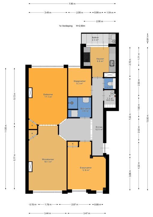 - woonoppervlakte 85m² (exact gemeten conform de BBMI)