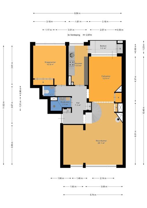 - woonoppervlakte ca. 120m² (gemeten conform de BBMI)