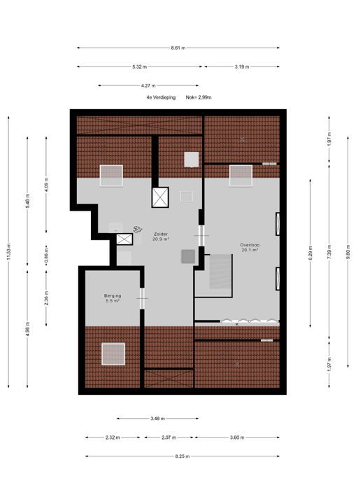 via trap in de woonkamer toegang tot 3e etage bestaande uit een overloop/slaapkamer ca. 20m², een multifunctionele ruimte van ca. 21m²;