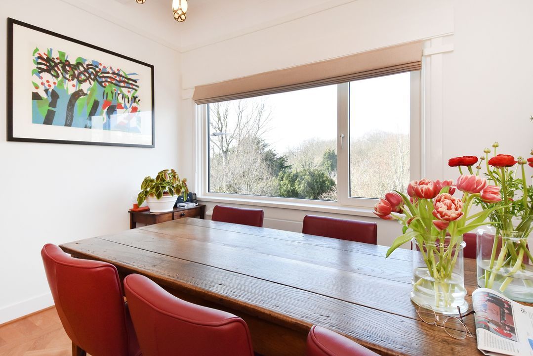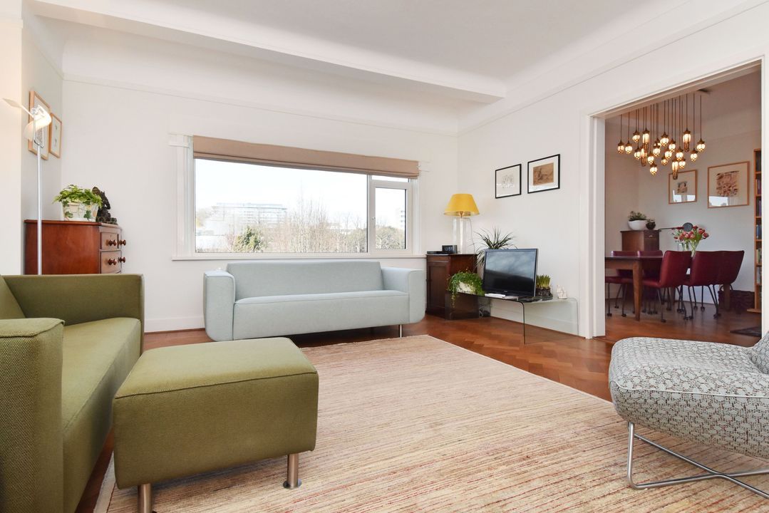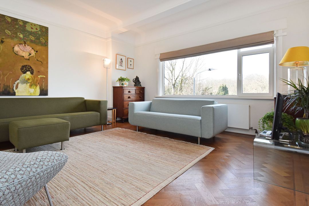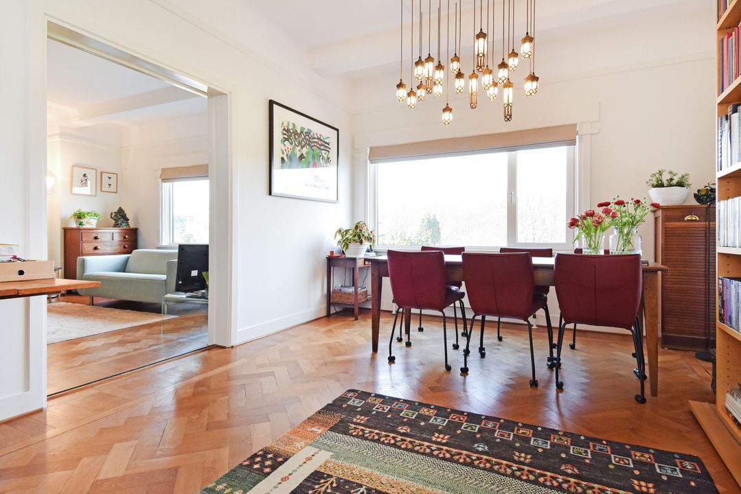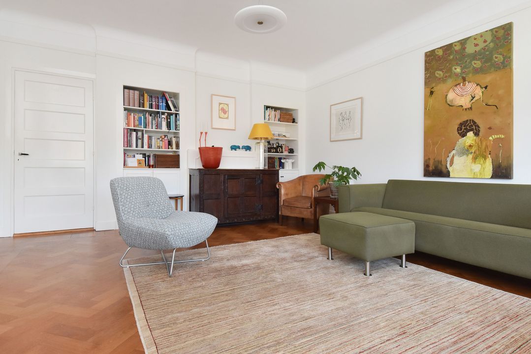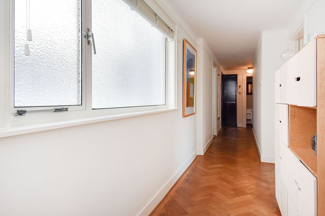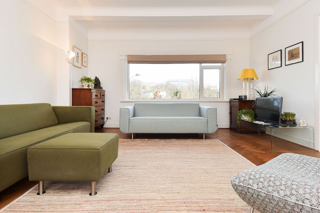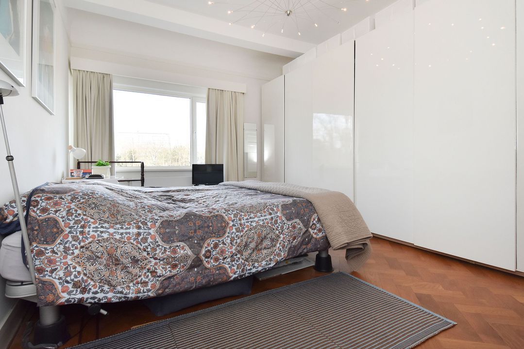 Beautiful 4-room apartment (124m²) on the second floor (accessible by elevator) situated on a square with unobstructed views of the Rosarium. Situated in the "Wilshout" national heritage, which was designed by architects Frans Lourijsen and Jan Wils. The apartment building was developed in 1926 as a residential hotel. The architects were members of the New Hague School and were inspired by the American architect Frank Lloyd Wright.