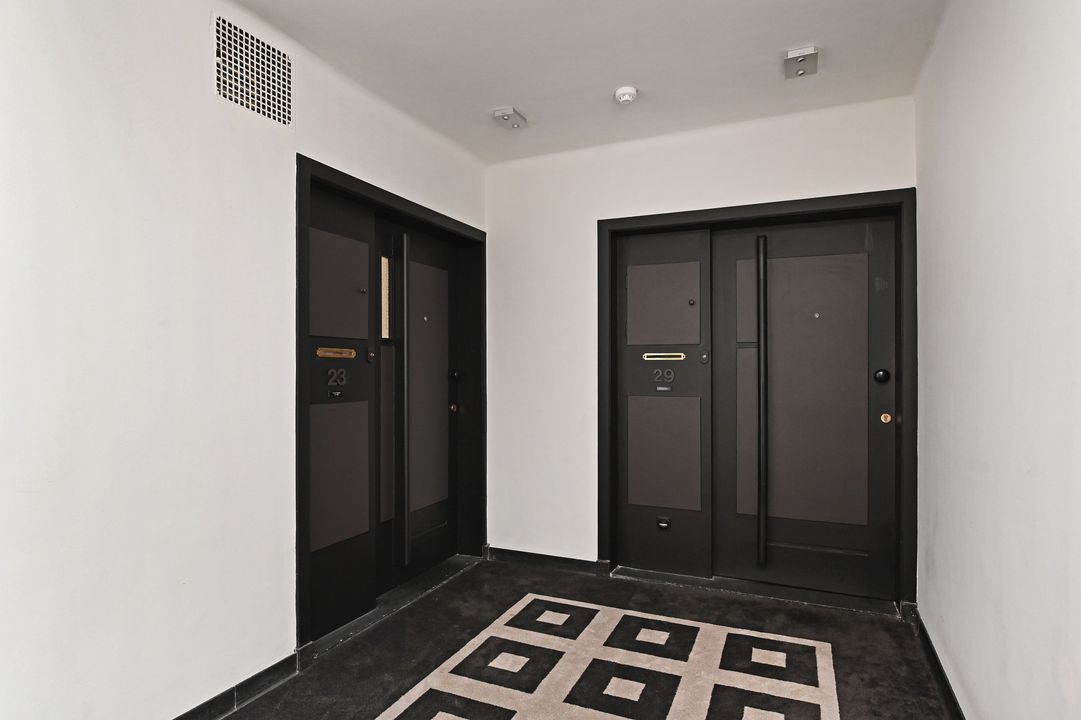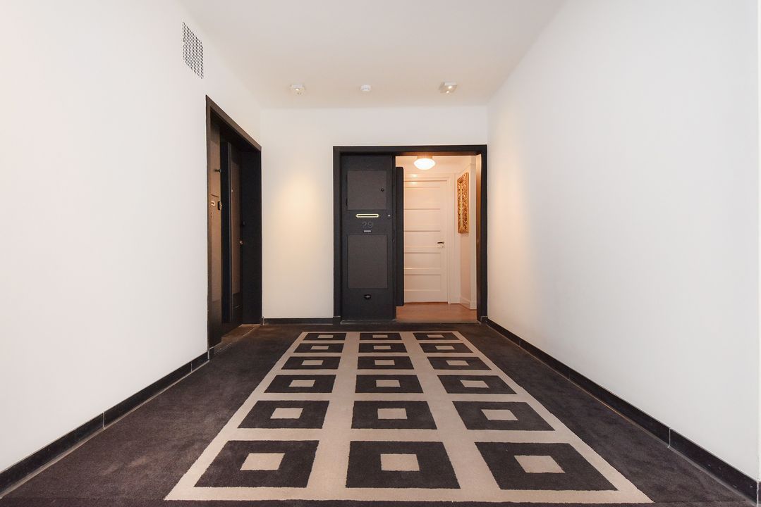 Stijlvolle hoofdentree met bellen en brievenbussentableau, videofoon; monumentale hal met marmeren trappenhuis, lift en (voormalige) portiersloge.