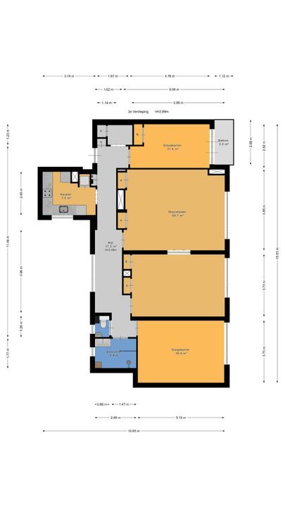 - prachtige eiken visgraat parketvloer in het gehele appartement behalve in keuken en badkamer