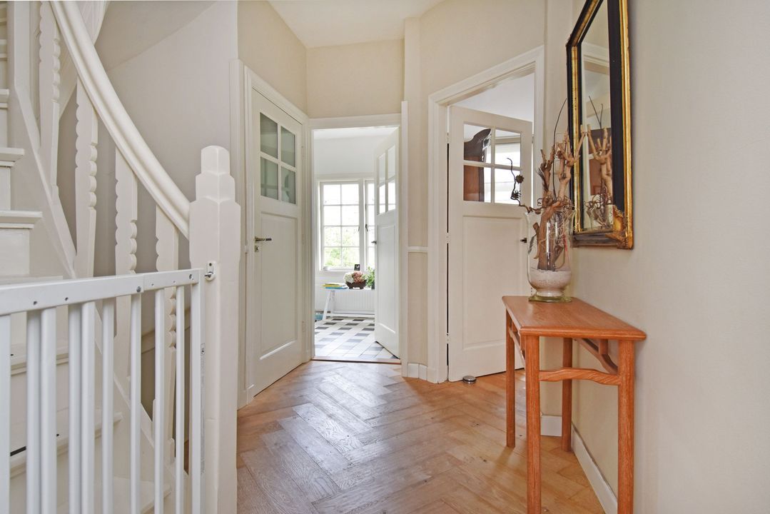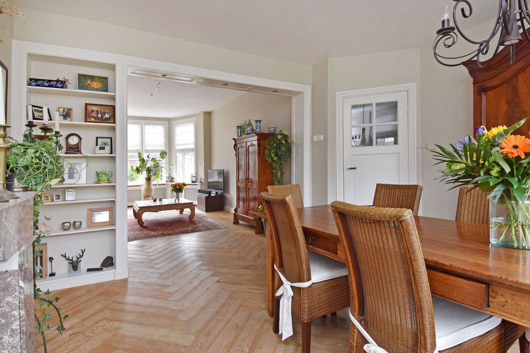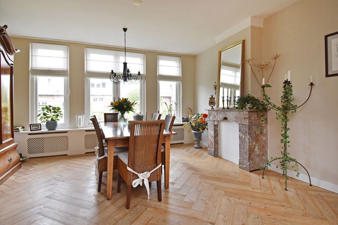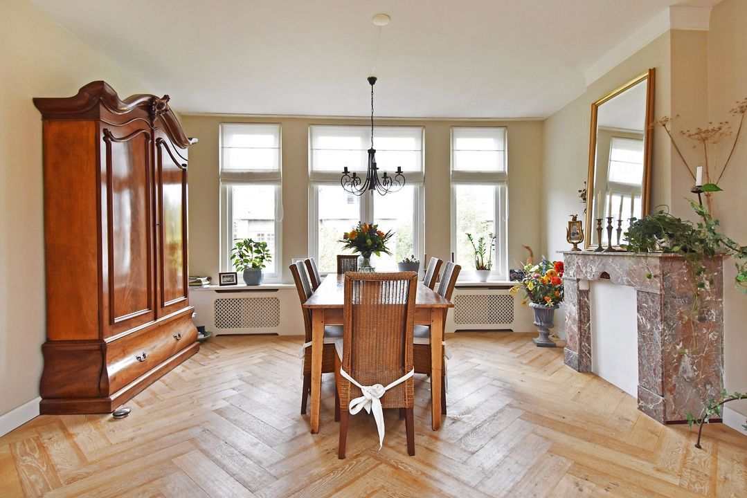 1st floor: spacious hall; attractive room with 2 marble fireplaces (possibility for a fireplace), suite separation with closet, beautiful herringbone oak floor (which has been laid continuously in the hall, front side room and en-suite room), bay window at the front with beautiful view through the Spreeuwenlaan; front side room. spacious, modern kitchen with 5 burner stainless steel gas stove, SMEG fridge/freezer, Siemens dishwasher, microwave and extractor hood; toilet;