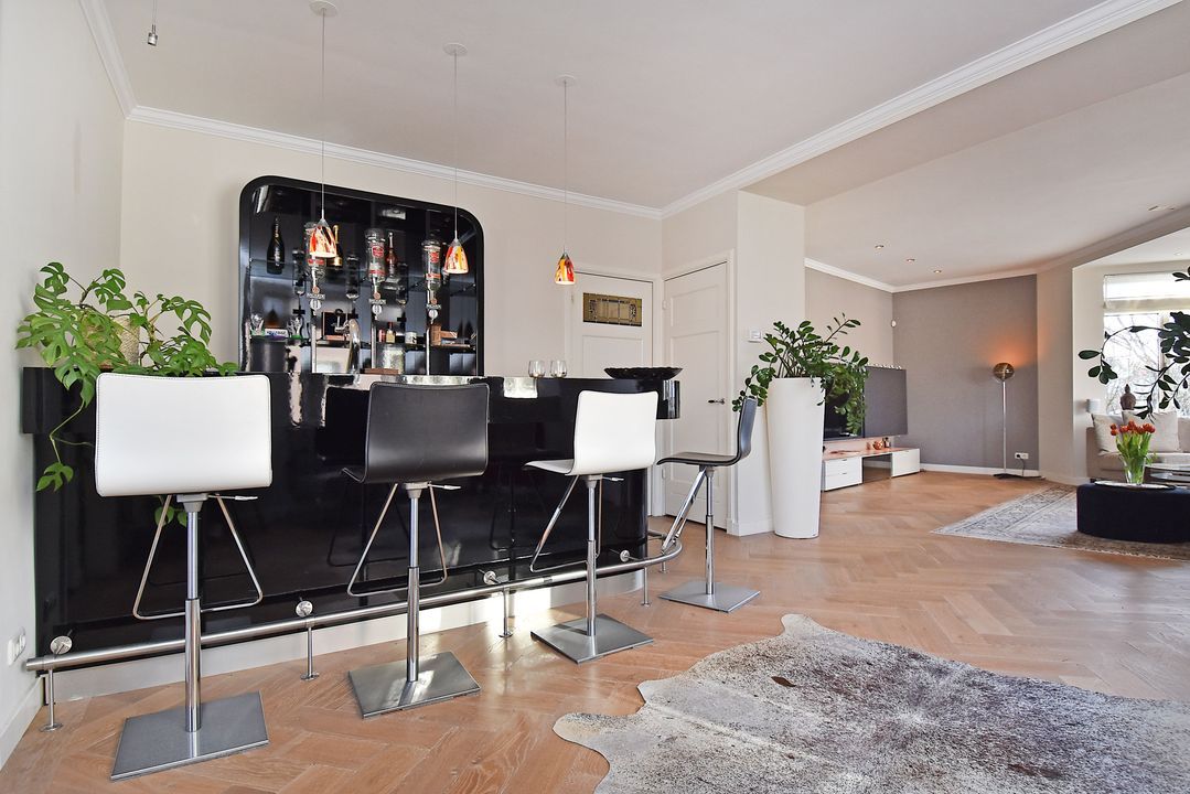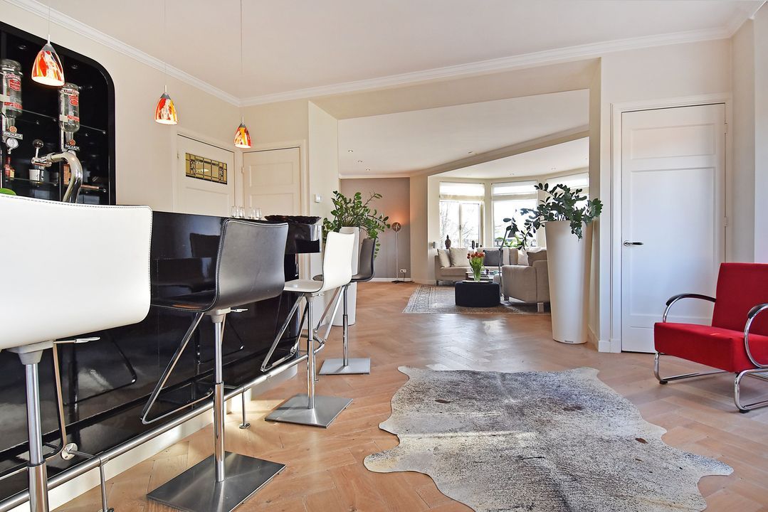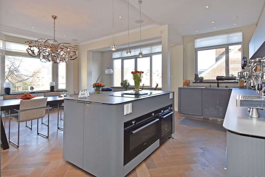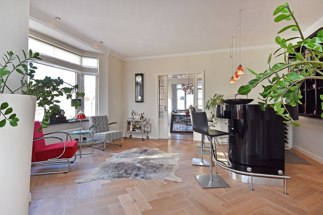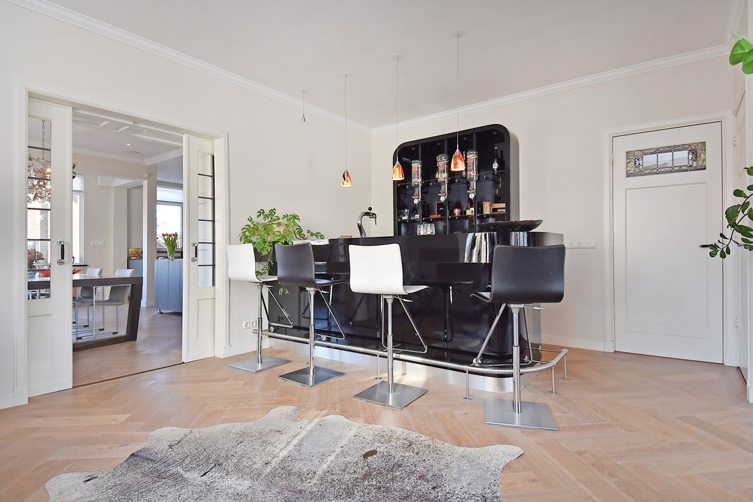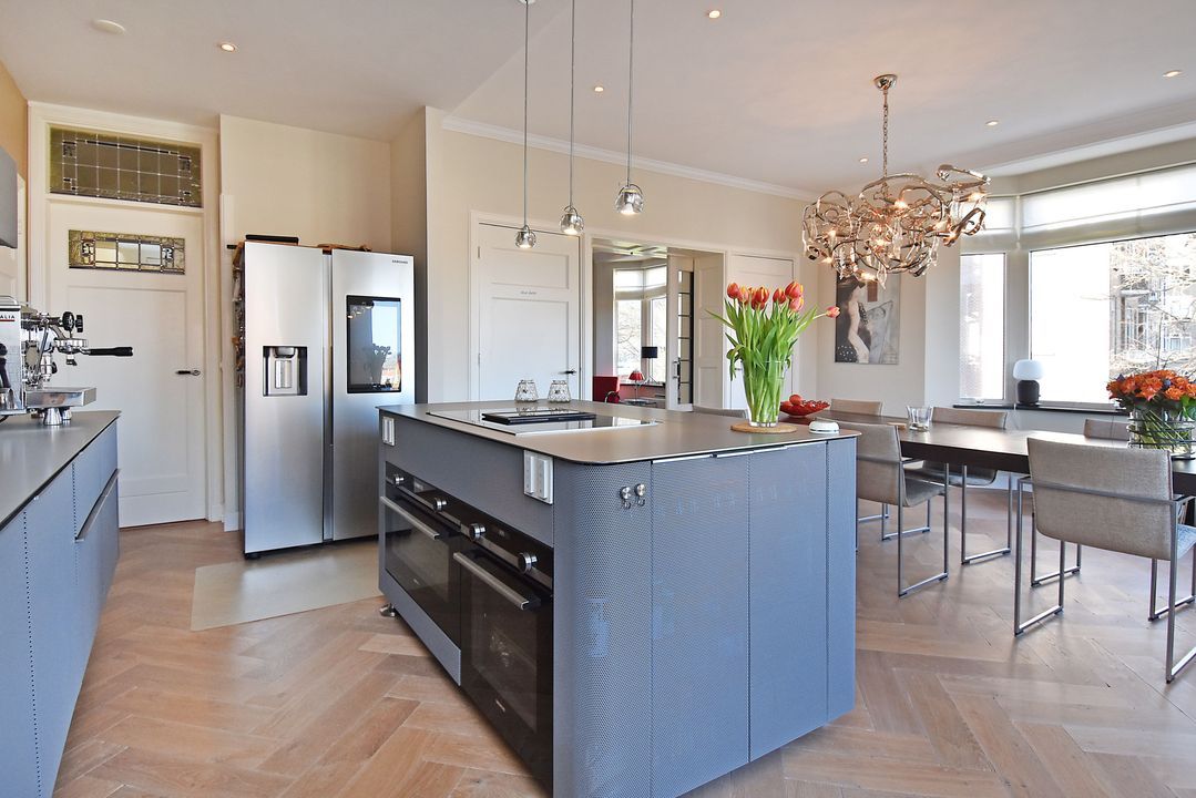 2nd (living) floor: playful central hall with wardrobe and a space for the central heating boiler and boiler; spacious pantry; luxury toilet; living room approx. 62m² with striking bay window, partly ensuite with middle room with two fixed cupboards and tap cupboard/bar, partly ensuite with rear/living room/kitchen with three fixed cupboards approx. 588x626 with luxurious designer kitchen designed by Ben Hoek with cooking island and all conceivable Siemens built-in equipment such as oven/microwave combination, dishwasher and induction hob with built-in recirculation extractor, as well as a Quooker (the Quooker not only provides hot and boiling water, but also cooled and sparkling water all year round. Type Comblin+ and Cube).