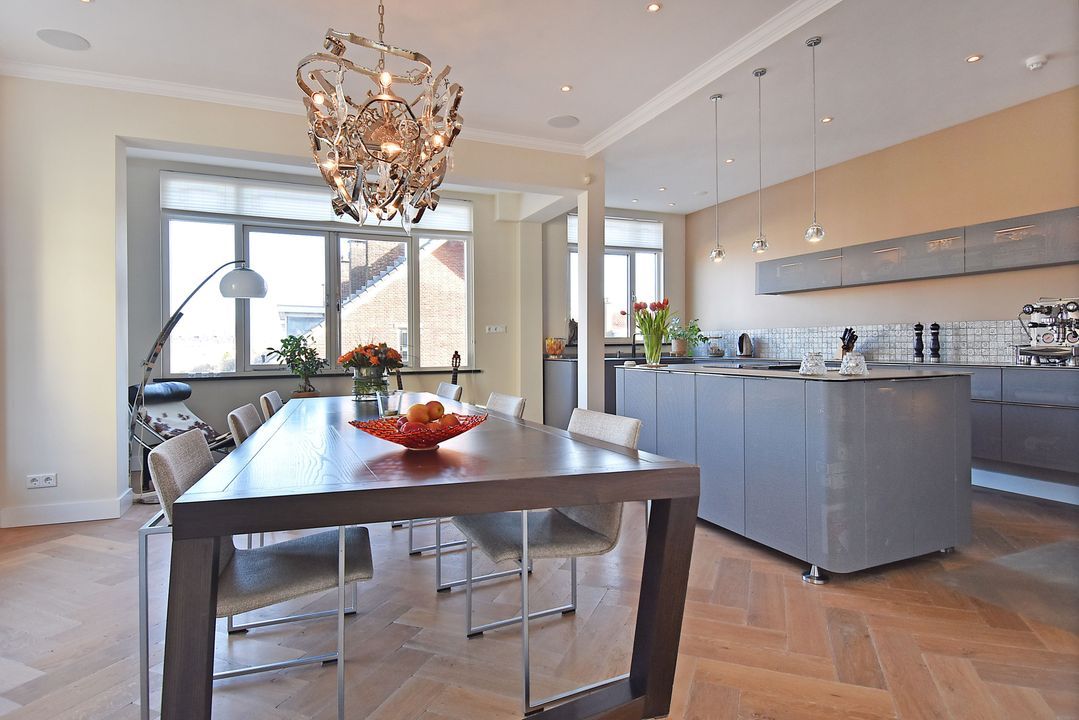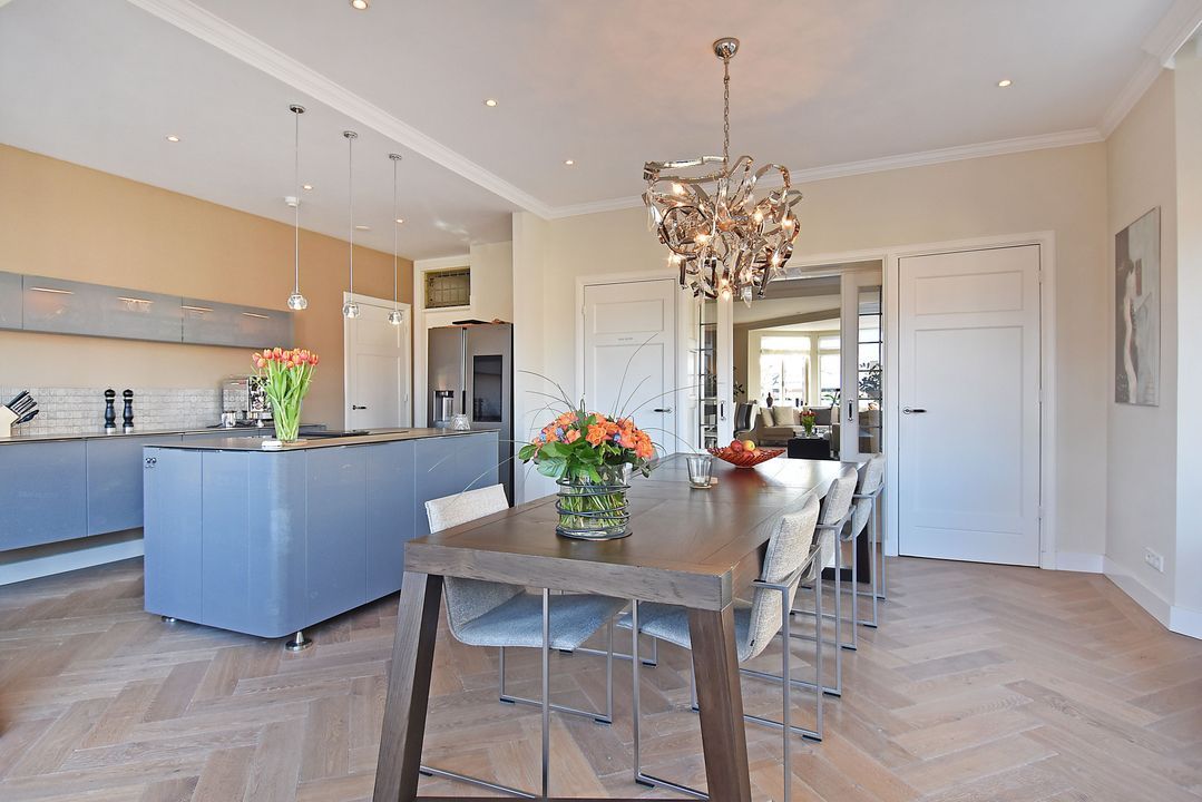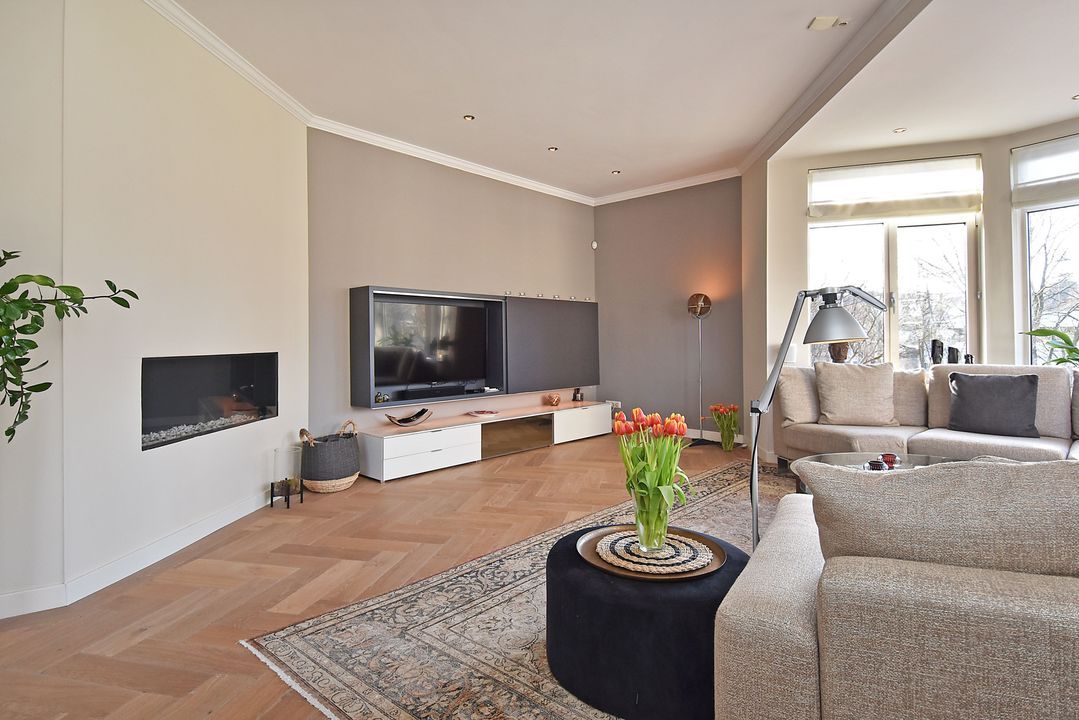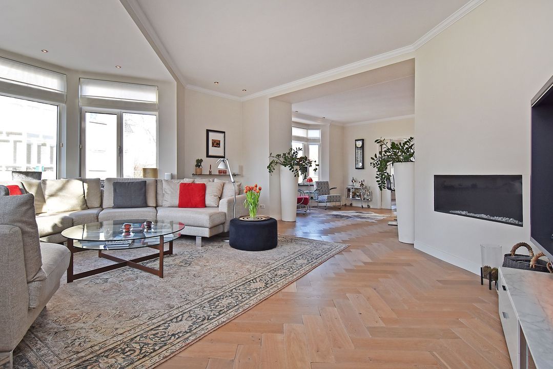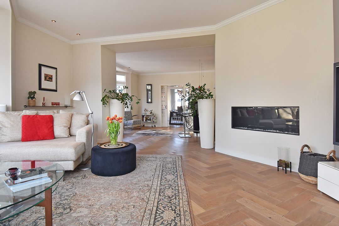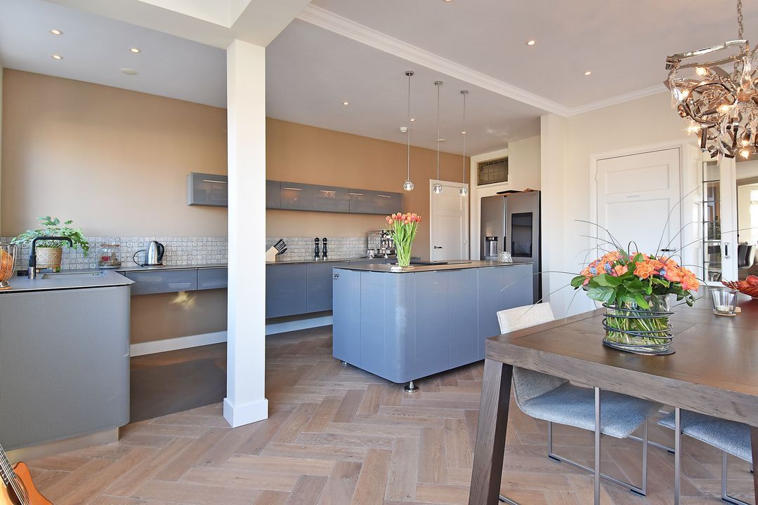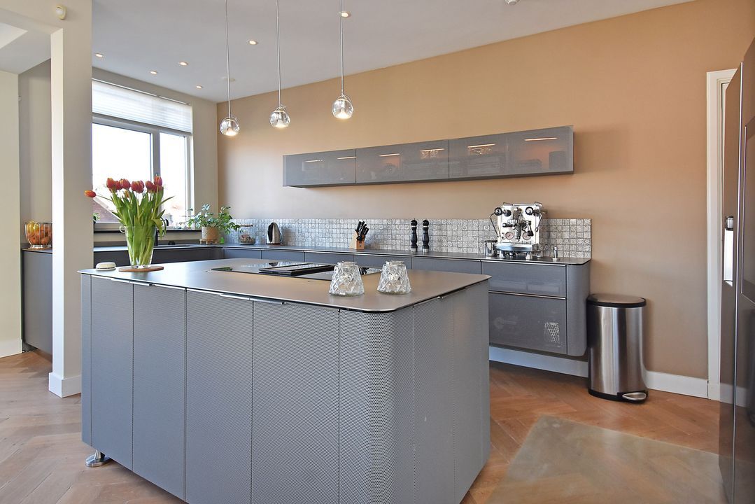 2nd (living) floor: playful central hall with wardrobe and a space for the central heating boiler and boiler; spacious pantry; luxury toilet; living room approx. 62m² with striking bay window, partly ensuite with middle room with two fixed cupboards and tap cupboard/bar, partly ensuite with rear/living room/kitchen with three fixed cupboards approx. 588x626 with luxurious designer kitchen designed by Ben Hoek with cooking island and all conceivable Siemens built-in equipment such as oven/microwave combination, dishwasher and induction hob with built-in recirculation extractor, as well as a Quooker (the Quooker not only provides hot and boiling water, but also cooled and sparkling water all year round. Type Comblin+ and Cube).