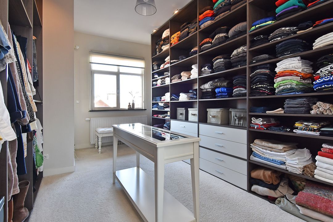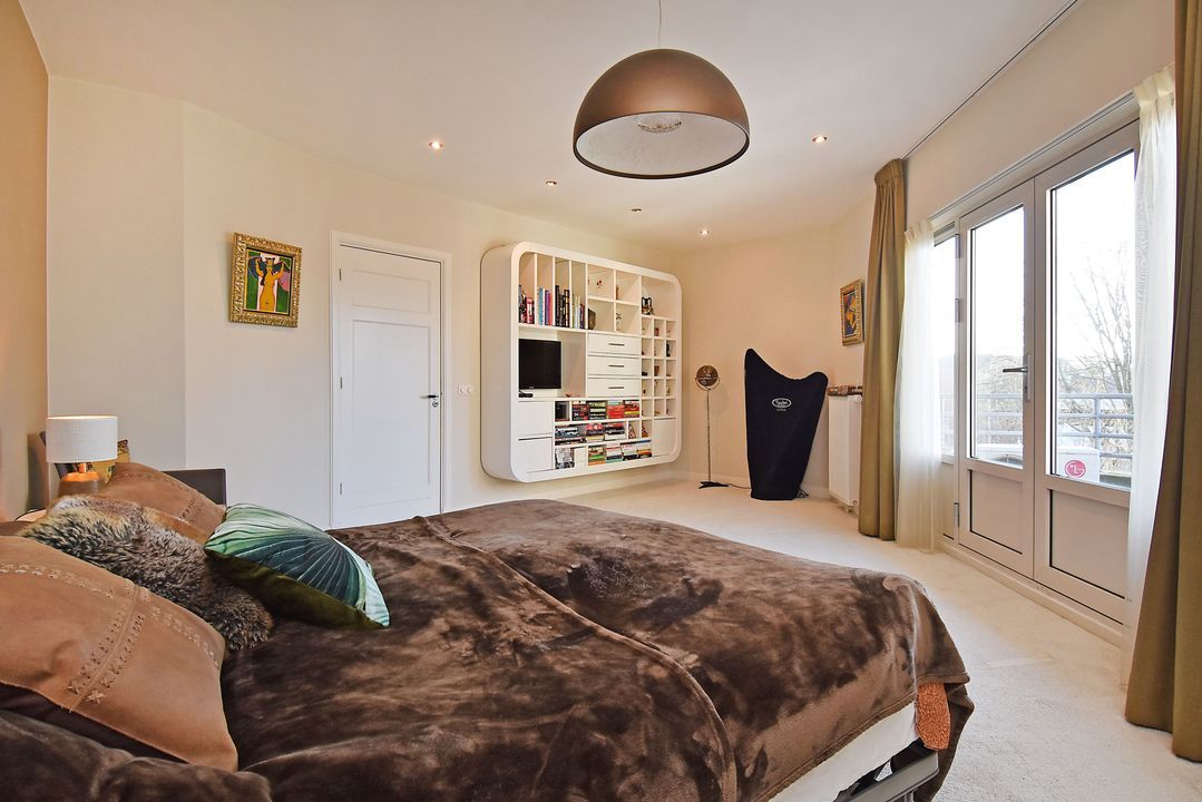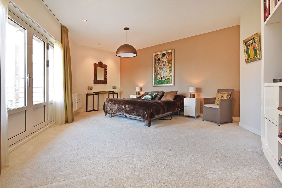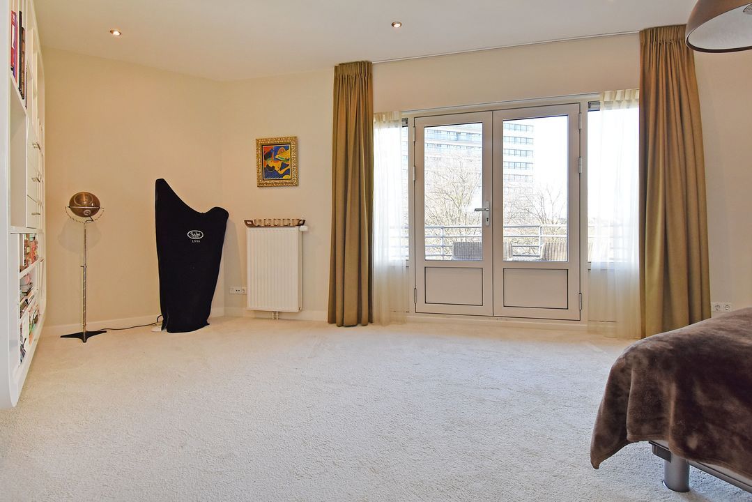 3e verdieping: overloop, 2e luxe toilet, separate wasruimte met aansluiting was-en droogmachine, diverse kasten, slaapkamer voorzijde ca 28m² met openslaande deuren naar terras op zuidwesten gesitueerd; 2 kamers waaronder een "walk-in closet" aan achterzijde ca. 492x293 en 513x311 op balkon ca. 128x400. De tussen de voor- en achterkamers gesitueerde riante design badkamer ca. 498x342 is uitgevoerd met een ligbad, inloopdouche en luxe badkamermeubel met dubbele waskommen alsmede een fraaie betegelde vloer met vloerverwarming.