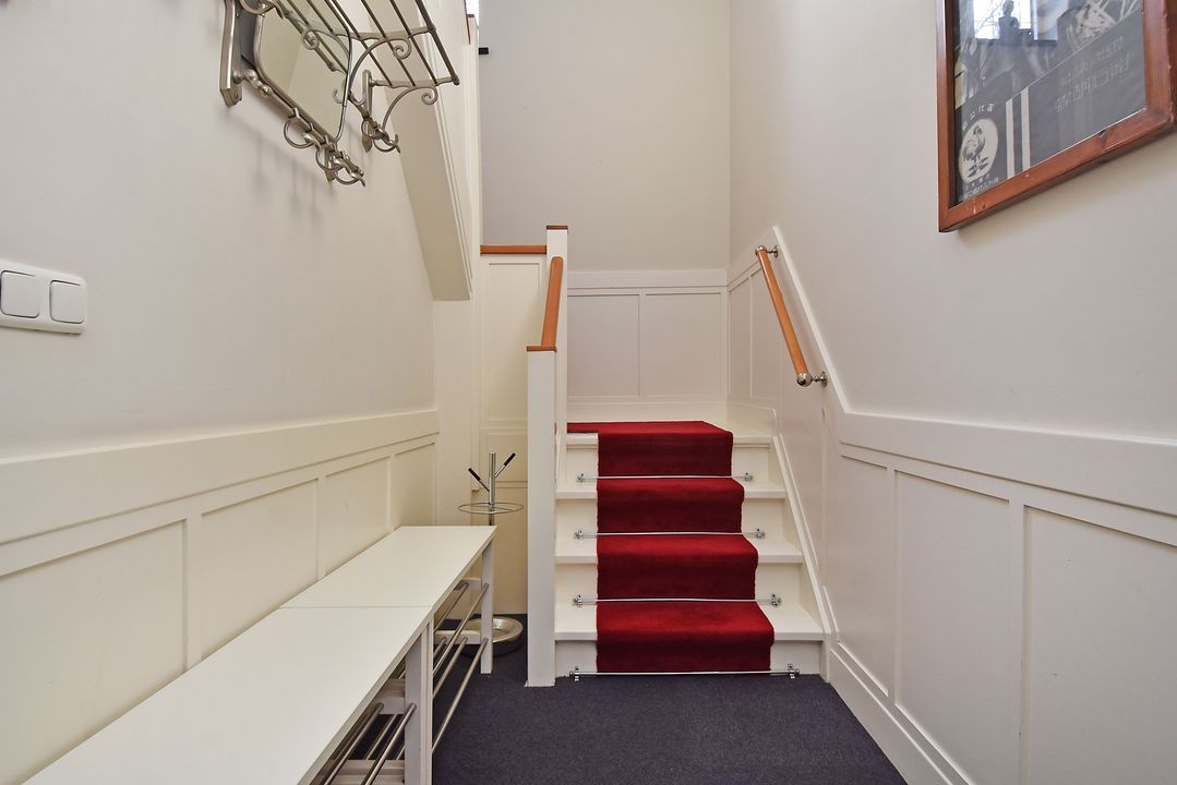 Open trap naar eerste verdieping alwaar ruim verzorgde entree woning. Middels een schitterend trappenhuis (o.a. glas-in-lood) komt u op de 2e, 3e en 4e verdieping.
