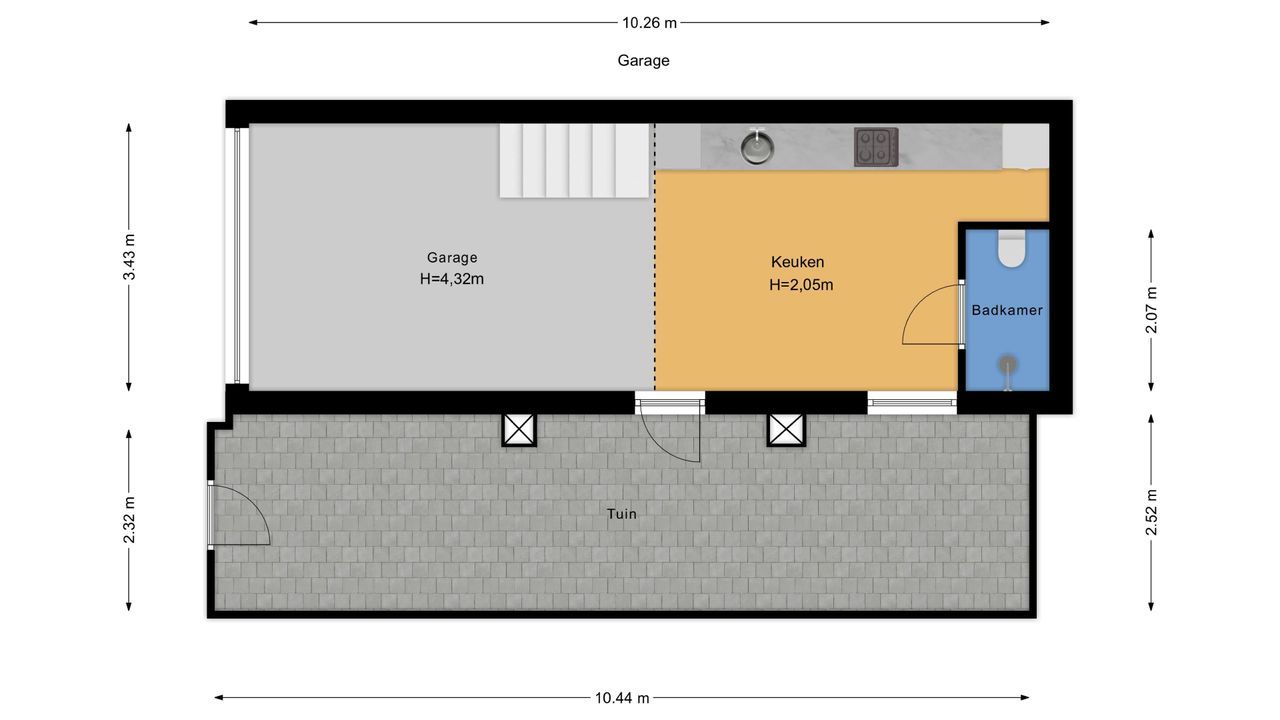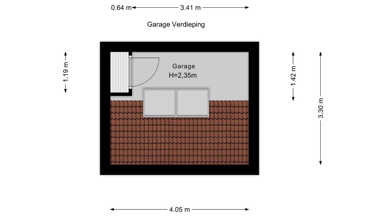 The large garage (can be purchased separately for € 175.000,-) is located approximately 20 meters from the house. Directly next to the garage is an outdoor area of approximately 26 m2 that can be reached by the garage or door from the public street.